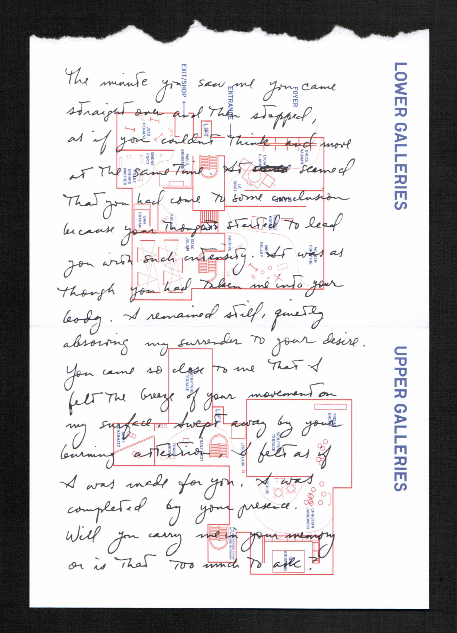 Janine Antoni, Yours Truly, 2010. Ink on paper, 5 7/8 x 8 1/2”. © Janine Antoni. Courtesy of the artist and Luhring Augustine, New York.