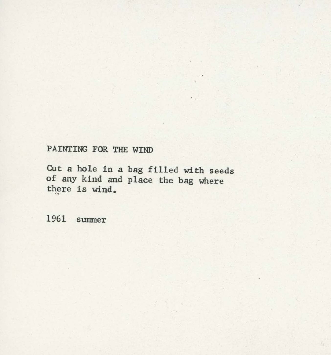 Yoko Ono, Painting For The Wind, summer 1961. First published in Yoko Ono: Grapefruit (Tokyo: Wunternaum Press, July 4, 1964). © Yoko Ono.