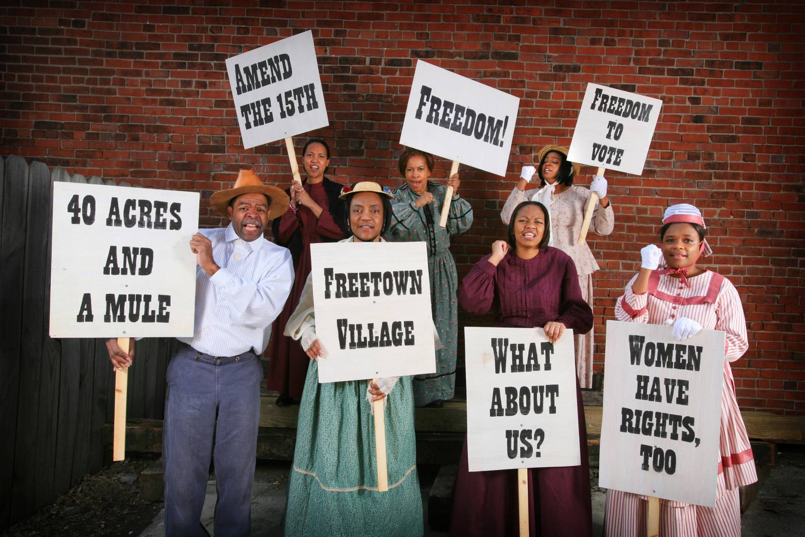 Historical interpreters from Freetown Living History Museum, as part of Allison Smith’s 2008 project The Donkey, The Jackass, and The Mule, with the Indianapolis Museum of Art. Photo: Allison Smith and Michelle Pemberton.