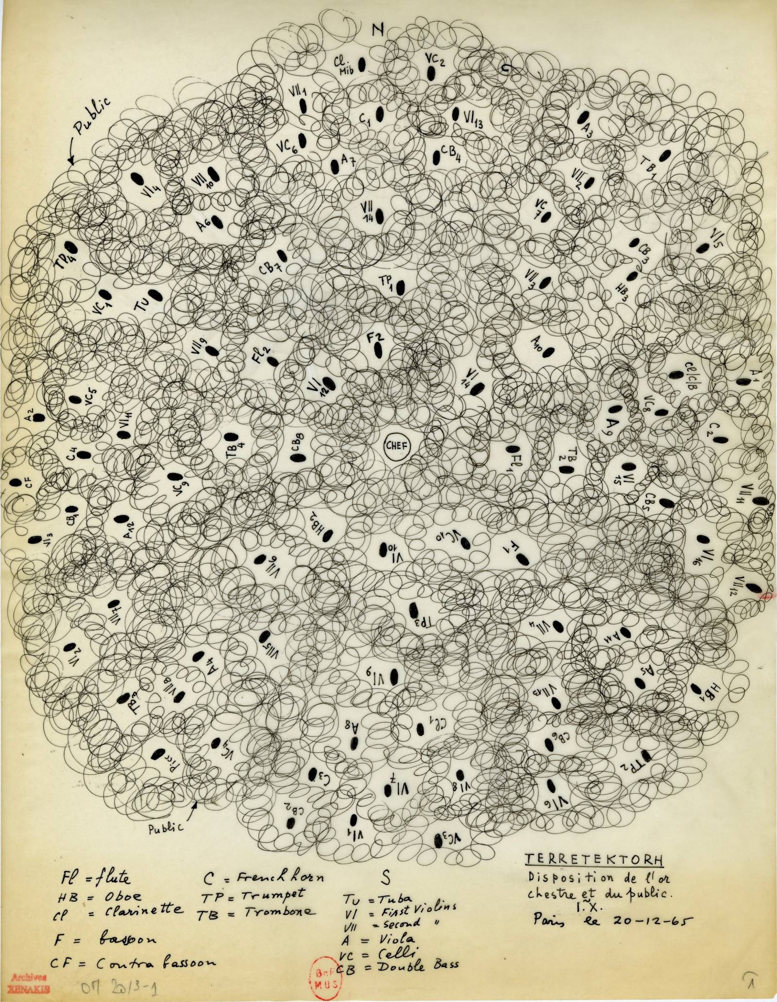 Iannis Xenakis, Terretektorh, Distribution of Musicians, 1965. Collection famille Xenakis. Courtesy of the Iannis Xenakis Archives. © Iannis Xenakis.