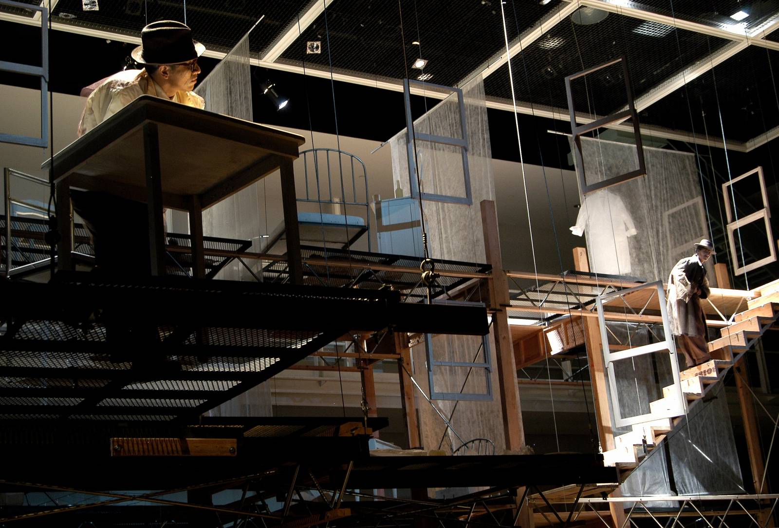 Joanna Haigood and Wayne Campbell, Ghost Architecture, 2004. An aerial dance installation centering on the architectural and social history of the site. Yerba Buena Center for the Arts, San Francisco.