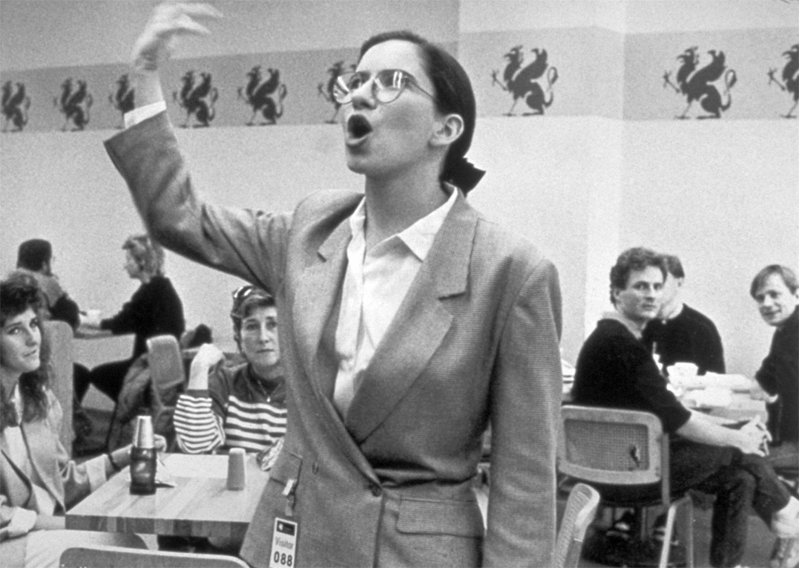 Andrea Fraser, Museum Highlights: A Gallery Talk, 1989. Performance. Performance documentation: Kelly & Massa Photography. Courtesy of the artist. © Andrea Fraser.