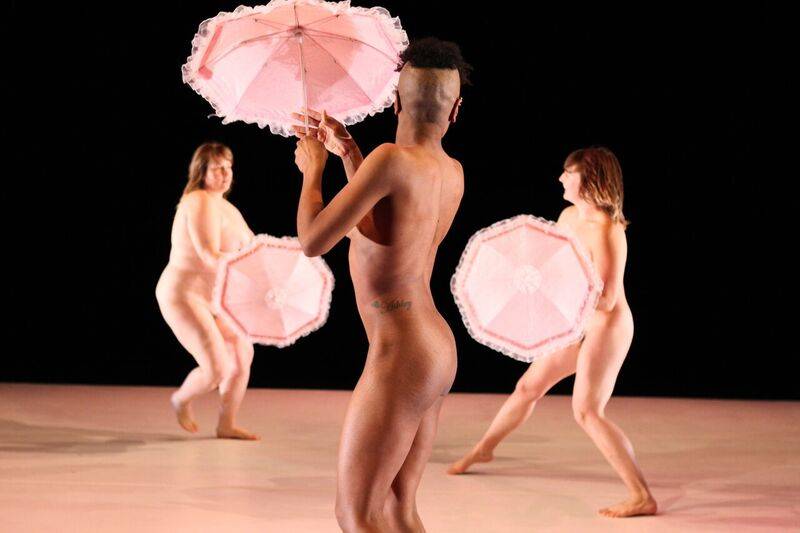 Young Jean Lee, Untitled Feminist Show, 2012. Baryshnikov Arts Center, New York, 2012. Hilary Clark, Regina Rocke, and Katy Pyle. Photo: Julieta Cervantes.